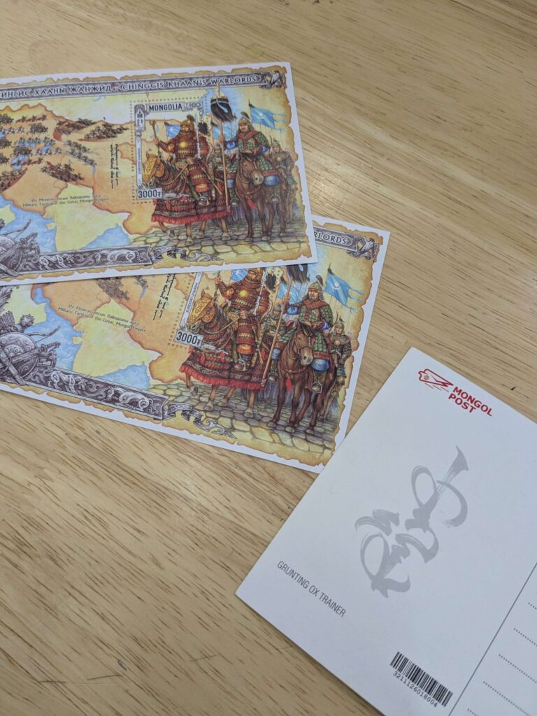 日本へポストカードも送りました。切手と葉書で8,200₮(約336円)。