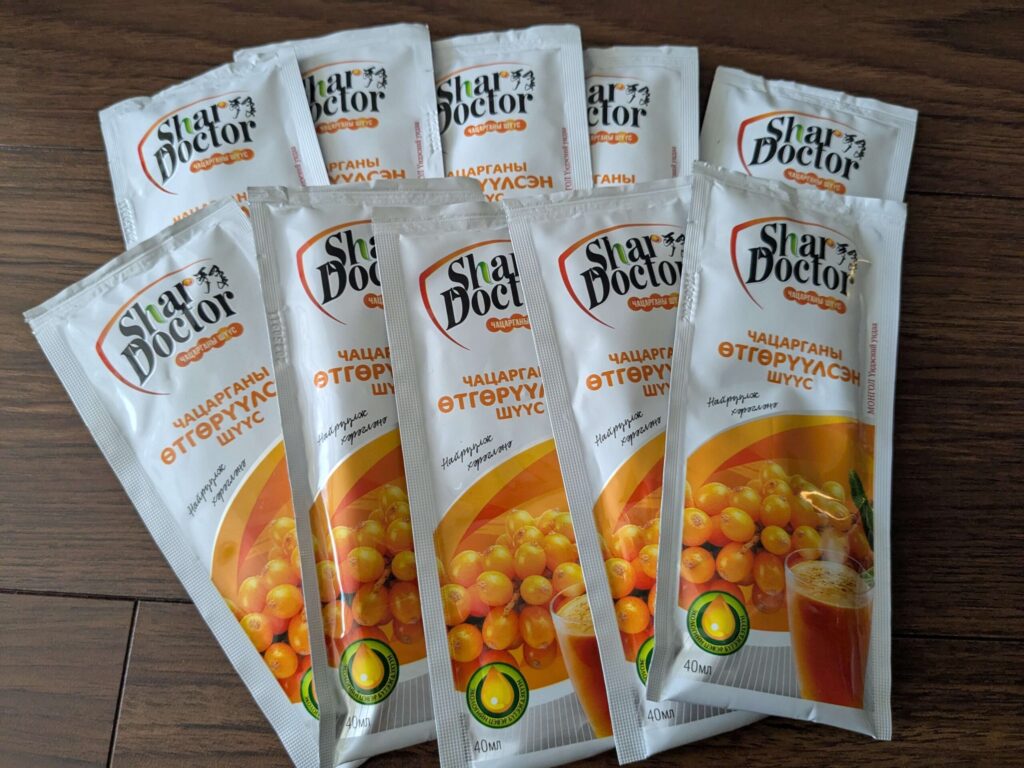 チャチャルガンの濃縮還元ジュース。8,000₮(約33円)。