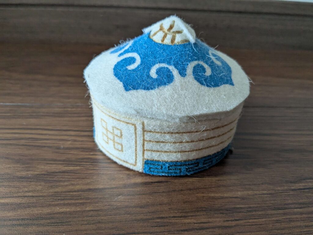 カザフ模様のフェルトの小物入れ。12,980₮(約533円)。