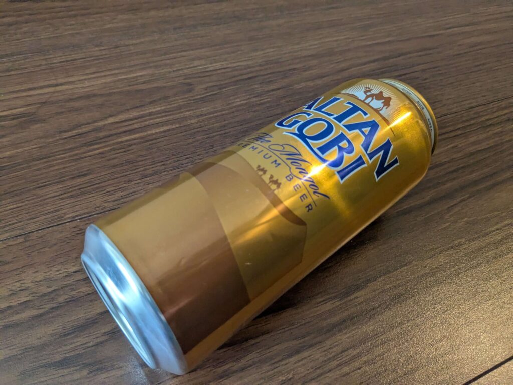 アルタンゴビビールのロング缶。4,618₮(約190円)。