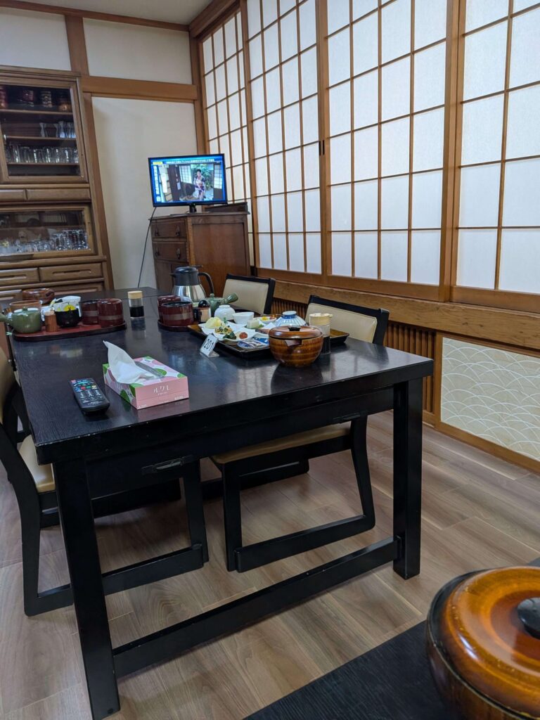 湯治宿としての側面もある宿なのでお部屋は簡素ですが居心地が良く、冬のこたつは最高です。本当に全てが「ちょうど良い塩梅」の宿で絶対にまた泊まるぞと心に誓うのでした。