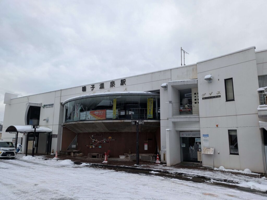 【東多賀の湯のアクセス】東北新幹線古川駅から在来線約45分+徒歩15分。最寄り駅からは送迎ありなので雪でも安心